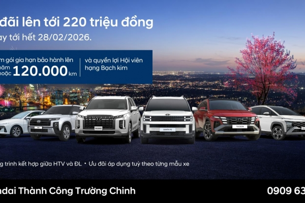 Hyundai Thành Công Trường Chinh triển khai chương trình khuyến mại đặc biệt dành cho khách hàng với tổng giá trị ưu đãi lên đến 220 TRIỆU ĐỒNG